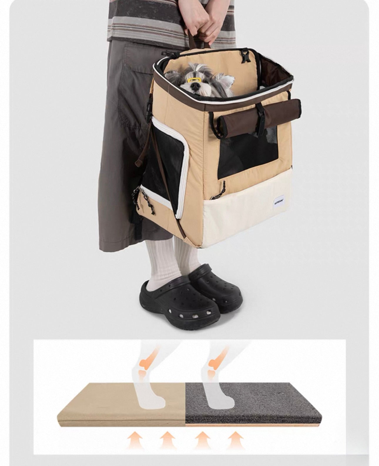 Its foldable design allows for compact storage, folding down to only 5cm thick when not in use. The reinforced composite fiber bottom provides stability and durability, ensuring pets remain safe and comfortable even with active movement.
